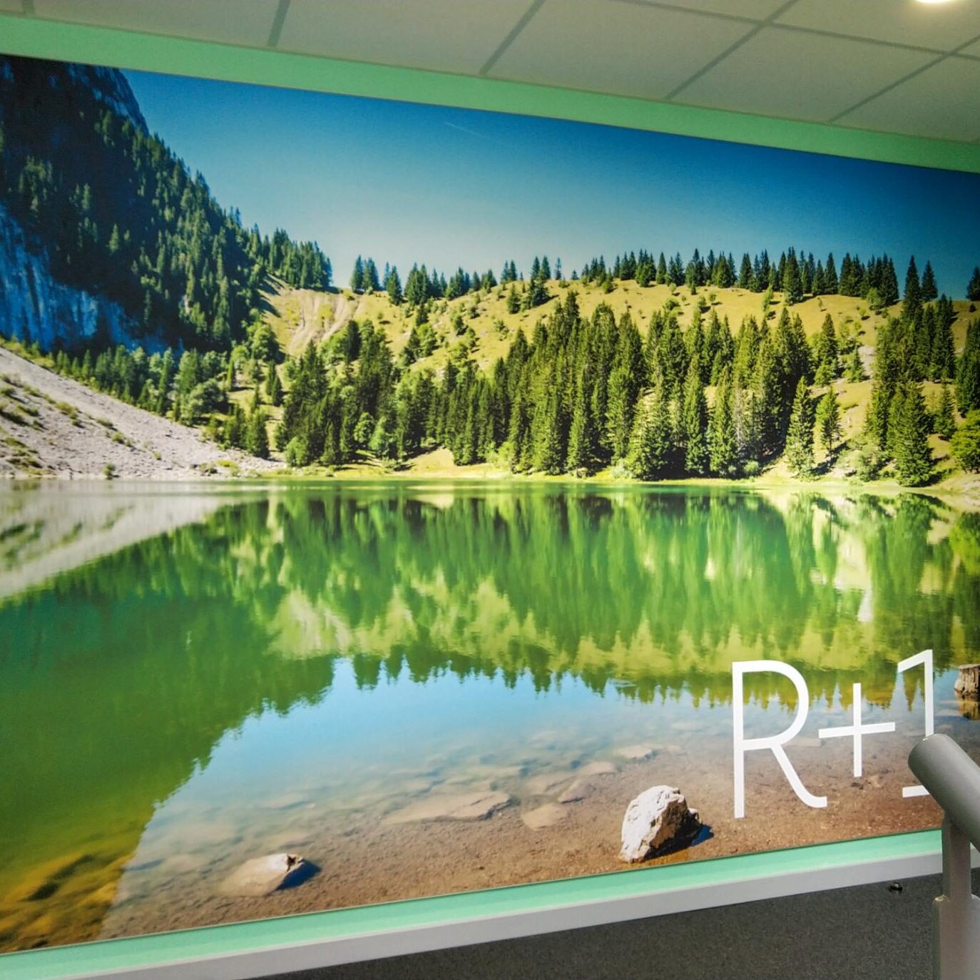 - Décoration de murs en adhésifs et caissons rétro éclairés